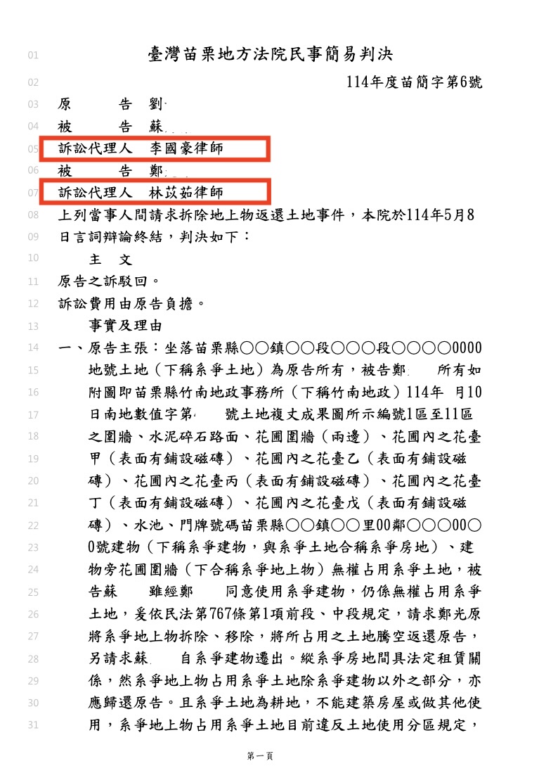 ❖本所律師成功協助寺廟住持及寺廟法人,於一起地主要求拆除地上物返還土地的民事訴訟中,獲得勝訴判決!